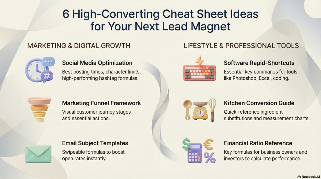 A cheat sheet lead magnet is more than a quick win; it’s your ticket to faster list growth, better engagement, and a reputation for clarity in a crowded market.