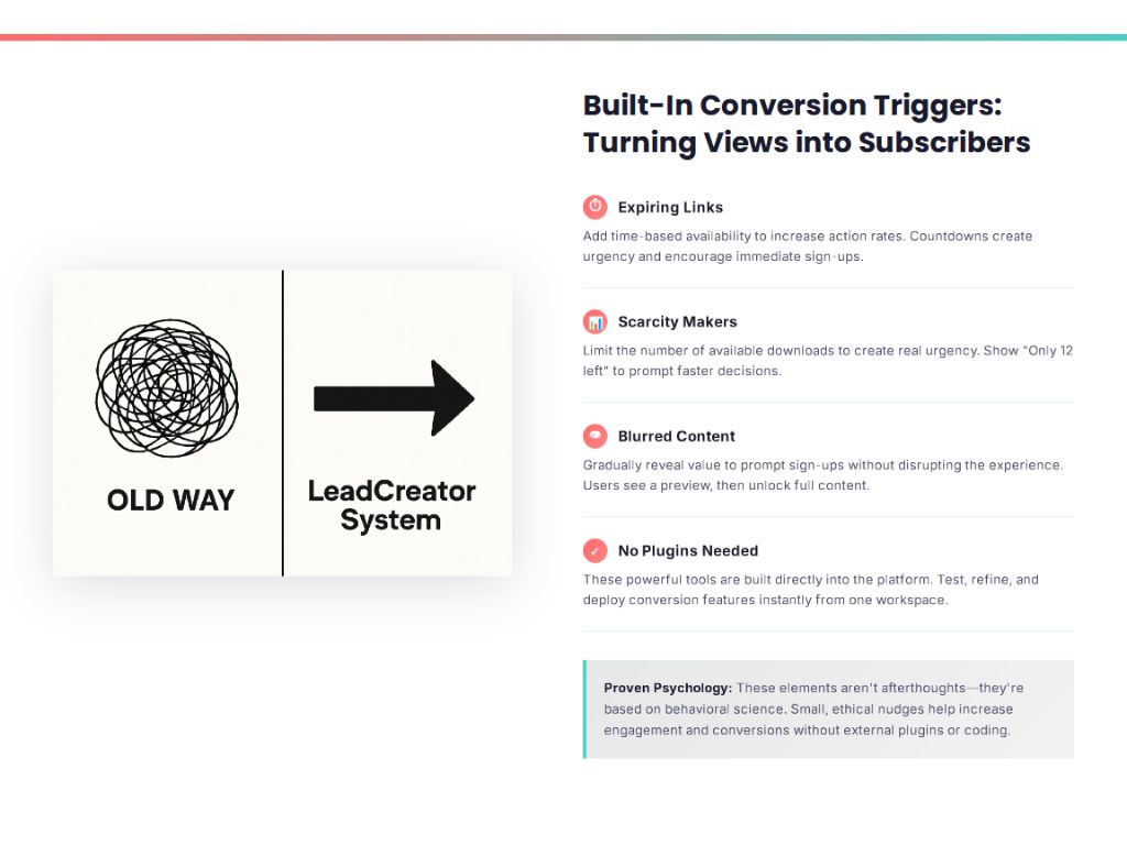 Features like Scarcity Makers, Expiring Links, and Blur Effects are more than design tricks. They embed behavioral triggers that encourage engagement and sign-ups, without needing external plugins or coding. This baked-in conversion layer gives small creators the same persuasive tools professional marketers use, only simplified.