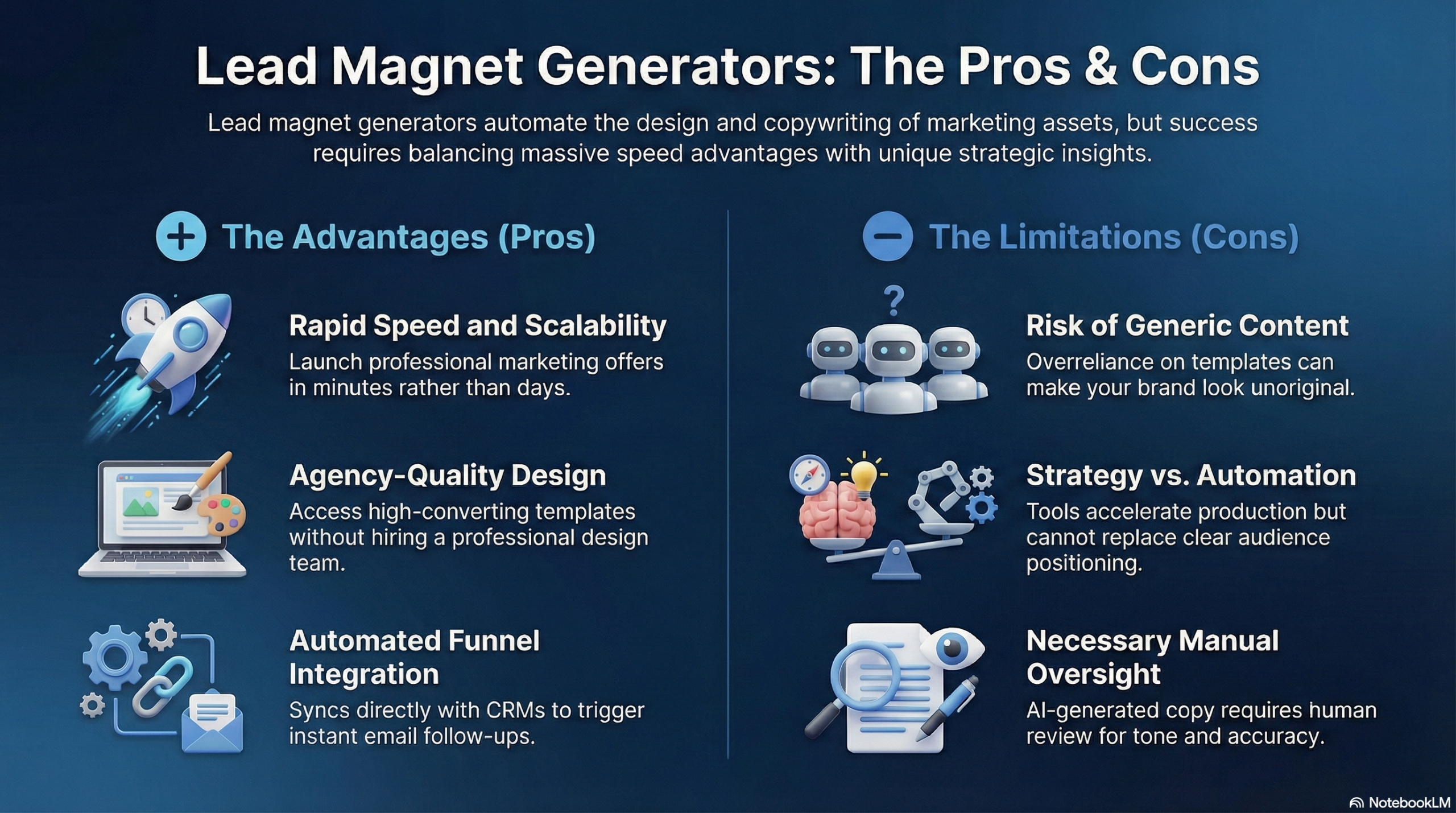 A lead magnet generator can transform how you create marketing assets but like any tool, its value depends on how you use it. Understanding both the advantages and the limitations helps you choose wisely and avoid common pitfalls.